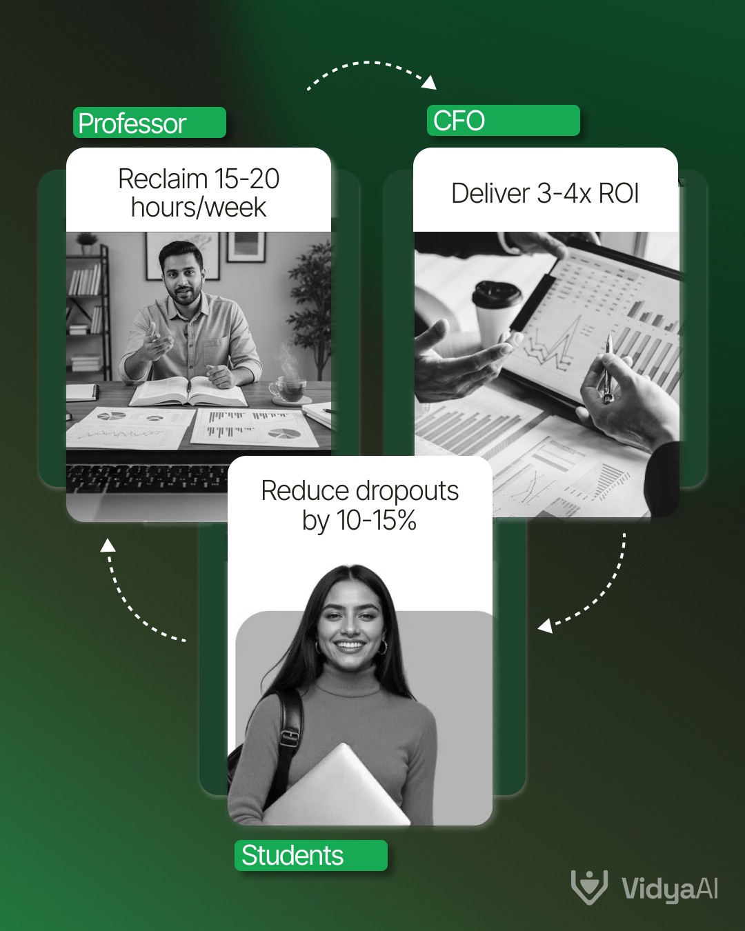 You're already creating the content. You're already paying the faculty. You're already teaching the classes. With VidyaAI, you can capture the magic of your best professors and make it work around the clock. It protects your faculty's time so they can do what only humans can- inspire, mentor, connect. It builds infrastructure that turns daily teaching into a lasting competitive advantage. This is how institutions are able to achieve 3–4x ROI with VidyaAI. The universities adopting this model today are building AI-native campuses that will lead India’s talent and education ecosystem tomorrow.
